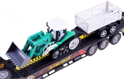 Remorca low-loader transportă în siguranță tractorul cu remorcă. Detaliile atent realizate și plasticul robust asigură durabilitate îndelungată în timpul jocului.