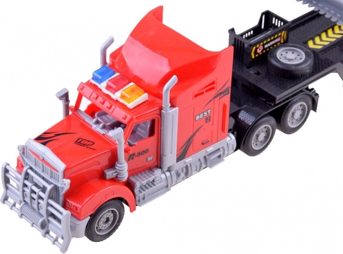 Camion RC cu șasiu coborât și remorcă low-loader și tractor cu remorcă – Roșu