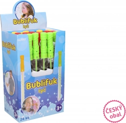 Vă prezentăm bublifuk-ul baton, ideal pentru crearea bulelor frumoase care aduc bucurie și râs. Fiecare baton conține 70 ml de lichid pentru bule și oferă patru variante atractive de culoare: albastru, verde, galben și roșu.