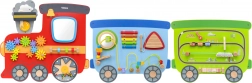 Fiecare vagon oferă un alt tip de activitate: locomotiva roșie cu angrenaje, rotiță tip moară și oglindă, vagonul albastru cu xilofon și labirint cu mărgele și vagonul verde cu pistă glisantă pentru trenuleț și cuburi rotative cu motive ale locurilor din lume. Datorită diversității elementelor, copiii nu se plictisesc și își dezvoltă natural abilitățile în spirit Montessori.