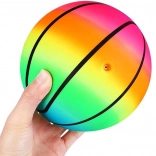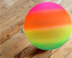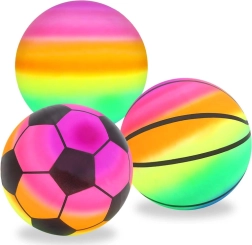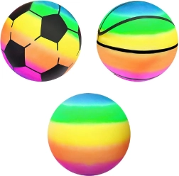 Mingea de cauciuc ușoară și rezistentă, cu culori curcubeu spectaculoase, îi va încânta pe cei mici la joacă atât în aer liber, cât și în sală. Se umflă ușor, este rezistentă la apă și, datorită culorilor vii, este mereu ușor de observat.