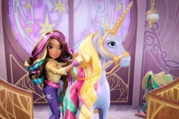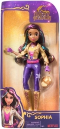 Cufundați-vă în lumea magică a Unicorn Academy cu păpușa Sophia. Se inspiră din popularul serial animat de pe Netflix și seria de cărți despre prietenie. Păpușa Sophia, măsurând 23 cm, aduce personajele de pe ecran cu detalii perfecte de la cap până la picioare. Are păr ondulat ca un curcubeu, care poate fi pieptănat și stilizat folosind accesoriile incluse. Sophia poartă un costum de călărie caracteristic cu o jachetă aurie și simboluri magice.
