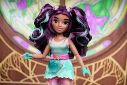 Păpușa poartă o rochie roz-turcoaz cu petale, colanți cu motive de Magie a plantelor, pantofi cu flori și accesorii precum agrafe, mănuși și o curea cu fluturi. Cu accesoriile pentru coafat vei crea o mulțime de coafuri și povești. Extinde-ți colecția cu alte personaje și unicornii lor pentru și mai multe aventuri pe Insula Unicorni.