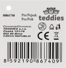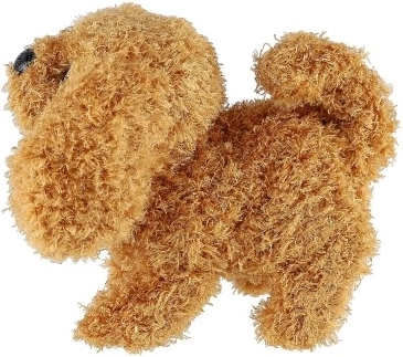Cățelul este realizat din pluș de calitate, moale, asigurând confort la joacă și îmbrățișare.