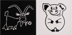 Câine, pisică, capră sau purceluș – imaginile contrastante invită la povestit împreună și la învățarea denumirilor animalelor.