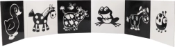 Leporelo-ul contrastant cu animăluțe din curte este prima carte ideală pentru bebeluși de la 0 luni. Motivele simple și expresive (câine, pisică, capră, purceluș etc.) cu contrast alb-negru ridicat atrag în mod natural privirea și ajută la antrenarea concentrării și a urmăririi vizuale.