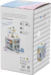 Cube-ul activ din lemn 5în1 POLARB este un centru educațional bine gândit pentru copii, care îmbină distracția cu învățarea. Fiecare latură oferă o altă activitate – de la mutarea mărgelelor până la roți dințate – susținând astfel dezvoltarea naturală a abilităților. Lemnul de calitate și vopselele sigure asigură durabilitate și joacă în siguranță.
