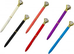 „Diamantul” mare, strălucitor și accentele metalice transformă scrisul obișnuit într-o experiență stilată – ideal ca dar și ca accesoriu la modă pentru birou.