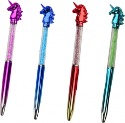 Elegant pix cu bilă cu figurină unicorn și corp transparent umplut cu pietricele sclipitoare adaugă notițelor tale șarm și un strop de magie. Scrierea lină este asigurată de mina albastră de 0,7 mm. Perfect pentru utilizare zilnică și ca accesoriu de cadou.