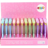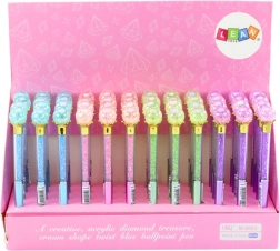Un pix unic ce îmbină eleganța cu designul modern. Corpul transparent cu mărgele mici creează reflexii spectaculoase, iar terminația în formă de „diamant” adaugă șarm scrisului. Datorită rezervei albastre și lățimii vârfului de 0,7 mm, oferă un scris fluid și lizibil, potrivit pentru școală, birou și notițe personale.