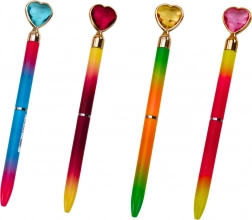 Un pix cu bilă elegant, cu ornament în formă de inimă cu efect de diamant, îmbină stilul și confortul la scriere. Are cerneală albastră și vârf de 0,7 mm pentru o trasare lină, ideal atât pentru uz zilnic, cât și ca cadou. Disponibil într-un mix de culori.