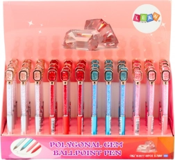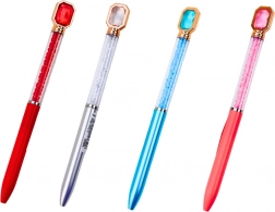 Pix elegant cu bilă, cu corp transparent umplut cu pietricele sclipitoare și un cristal fin la capăt. Cerneală albastră pentru scriere lină și cursivă, ideal atât pentru fiecare zi, cât și ca cadou. Disponibil într-un mix de culori ale corpului (roz, albastru, roșu, argintiu).