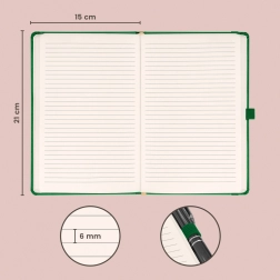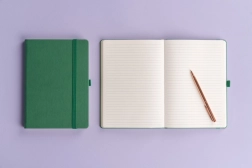 Caietul Aprint stilat, în nuanță verde, este o alegere excelentă pentru birou, școală sau călătorii. Interiorul dictando facilitează notițe ordonate, iar datorită suprafeței plăcute, cu textură fină, caietul are un aspect profesional și elegant.