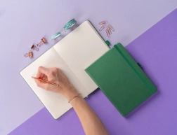 Descoperă un accesoriu practic și elegant pentru birou și școală. Caietul punctat NOTIQUE Aprint îmbină designul clasic și eleganța atemporală într-o nuanță de verde foarte apreciată. Textura fină a copertei oferă un aspect profesional și este excelentă pentru branding prin embosarea logo-ului companiei.