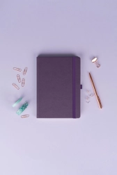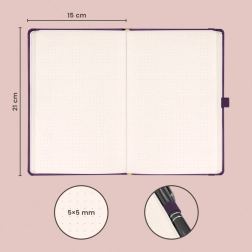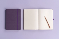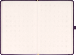 Caietul punctat NOTIQUE Aprint Neo, în culoare mov, îmbină clasicul și eleganța. Are o suprafață fin texturată, pe care se poate ștanța ușor logo-ul companiei, și un format practic de 15 × 21 cm pentru scris, planificare și schițe zilnice.