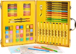 În interiorul valizei se află tot ce aveți nevoie pentru a vă finaliza proiectele artistice. Setul include creioane, pasteluri, markere cu două capete, vopsele, două pensule, o gumă și un ascuțitoare.