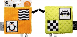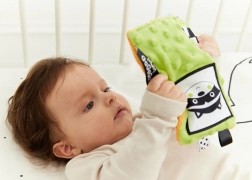 Materialul foșnitor și numeroasele panglici, bucle și etichete dezvoltă auzul, coordonarea mână–ochi și motricitatea fină în timpul jocului în pătuț sau cărucior.