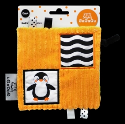 Pătură senzorială ușoară și compactă pentru cei mai mici, cu modele contrastante, texturi variate și elemente foșnitoare pentru dezvoltarea văzului, atingerii și auzului. Bucle, panglici și etichete care facilitează prinderea și susțin motricitatea fină. Design reversibil cu motive de pinguin și raton, captivant pentru bebeluși de la 0 luni.