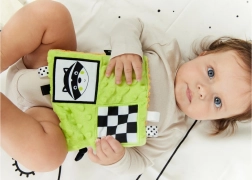 Modelele alb-negru pronunțate, completate de culori intense, ajută bebelușul să focalizeze mai bine și sprijină percepția vizuală încă de la naștere.