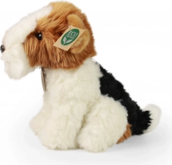 Acest câine de pluş Foxterrier, înalt de 20 cm, este realizat din pluş de înaltă calitate, cusut manual pentru a semăna maxim cu un câine adevărat. Cadou ideal pentru iubitorii de jucării moi.