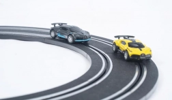 Pista auto DRIVERO cu lungimea traseului de 8,4 m oferă curse captivante pentru mici și mari. Alimentarea la transformator, 3 variante de configurare a traseului și 2 mașinuțe BUGATTI licențiate asigură ore întregi de distracție.