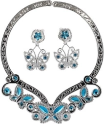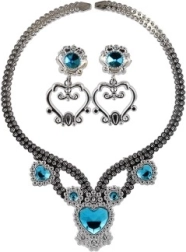 Colierul și cerceii eleganți, cu detalii strălucitoare, adaugă farmec oricărei ținute. Accesorii ideale pentru carnaval și joaca de acasă.