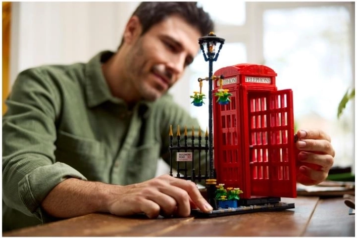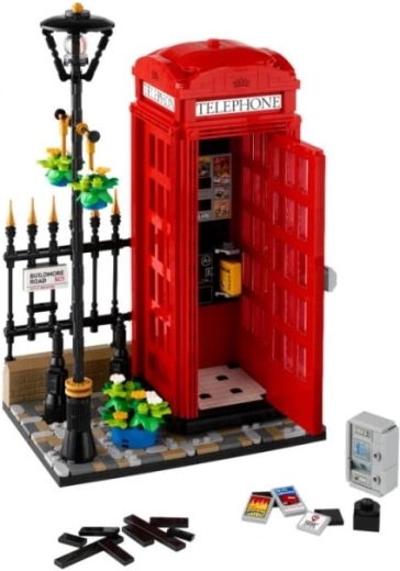 Adu acasă o bucată de istorie britanică cu cabina telefonică londoneză detaliată, care impresionează prin roșul iconic, panourile transparente ale ușilor și inscripția TELEPHONE. Scena construită include un trotuar pavat, o lampă stradală cu flori, un gard și un indicator stradal – toate pregătite pentru a fi expuse pe raft, în living sau la birou.