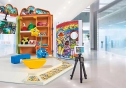 - Magazin de jucării Playmobil bine realizat cu rafturi, perete foto și monitor pentru cele mai bune experiențe de joc.