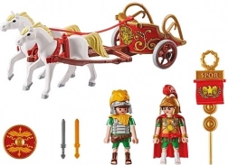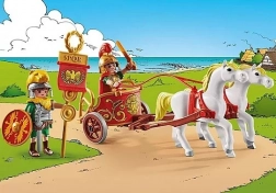 Vă prezentăm setul de joacă distractiv Playmobil din lumea Asterix, care include senatorul Brutus și un alt soldat roman, doi cai albi, un car, căști, un scut, un steag și multe alte accesorii pentru joc creativ de roluri.