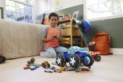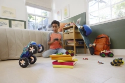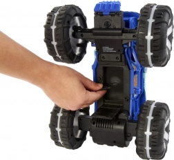 Apăsând și menținând apăsată tasta de acțiune, mașina se ridică pe două roți și execută un truc! Culorile și decorațiunile fiecărui model pot varia, dar fiecare garantează ore de distracție pline de dinamism.