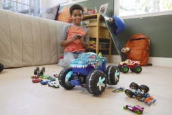 Intrați în lumea jocurilor captivante cu Hot Wheels Monster Trucks Mega-Wrex la scara 1:15. Acest model unic este echipat cu lumini și sunete care se activează cu fiecare interacțiune, oferind copiilor o experiență inspirantă plină de energie.
