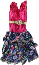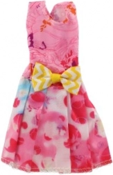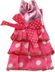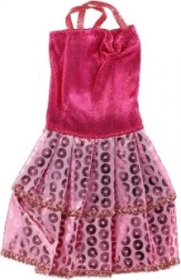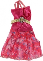 Această rochie roz cu o curea decorativă aurie și detalii cu model completează perfect orice păpușă.