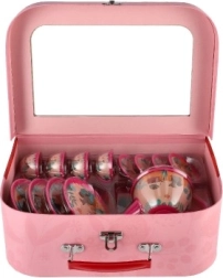 Setul de ceai este păstrat într-o valiză solidă cu mâner și închidere metalică. Copiii îl pot lua oriunde și îl pot strânge ușor după joacă.