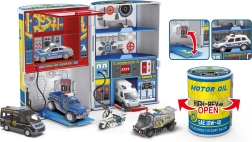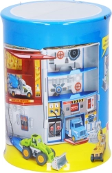 Acest atelier auto este un cadou ideal pentru orice mic pasionat de mașini. Vine cu o mașină metalică și oferă patru variante diferite: poliție, pompieri, construcții și curse. Toate vehiculele au roți libere, ceea ce asigură o manevrabilitate ușoară.