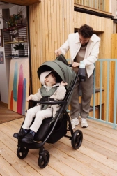 MoMi MIYA este conceput pentru părinții care își doresc manevrabilitate ușoară, siguranță și detalii practice la plimbările zilnice. Capotina extensibilă protejează împotriva soarelui și vântului, iar spătarul și suportul pentru picioare reglabile asigură o poziție confortabilă pentru bebeluș și copilul mai mare. Datorită dublei siguranțe la pliere și frânei de picior, deplasarea este mereu sub control.