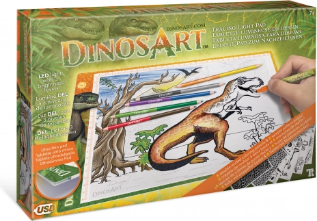 Tabletul de desenat DinosArt este instrumentul ideal pentru fiecare mic artist. Datorită luminii LED cu 3 niveluri de luminozitate și suprafeței ultra-subțiri, desenatul devine simplu și distractiv.