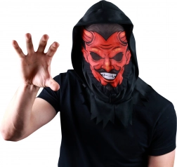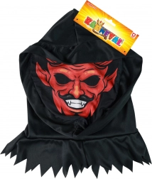 Mască textilă pentru întreaga capă cu motivul unui diavol înfricoșător este un accesoriu indispensabil pentru orice colecție de carnaval. Este ideală și pentru Halloween și serbări de Crăciun.