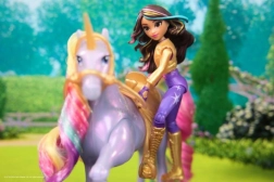 Păpușa Sophia are 7 puncte de articulație, astfel încât o poți așeza ușor pe unicorn și poți crea poziții de călărie realiste.