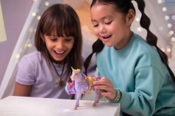 Șaua aurie, zăbala și motivele stelare de pe corpul unicornului accentuează aspectul magic și extind posibilitățile de joacă.