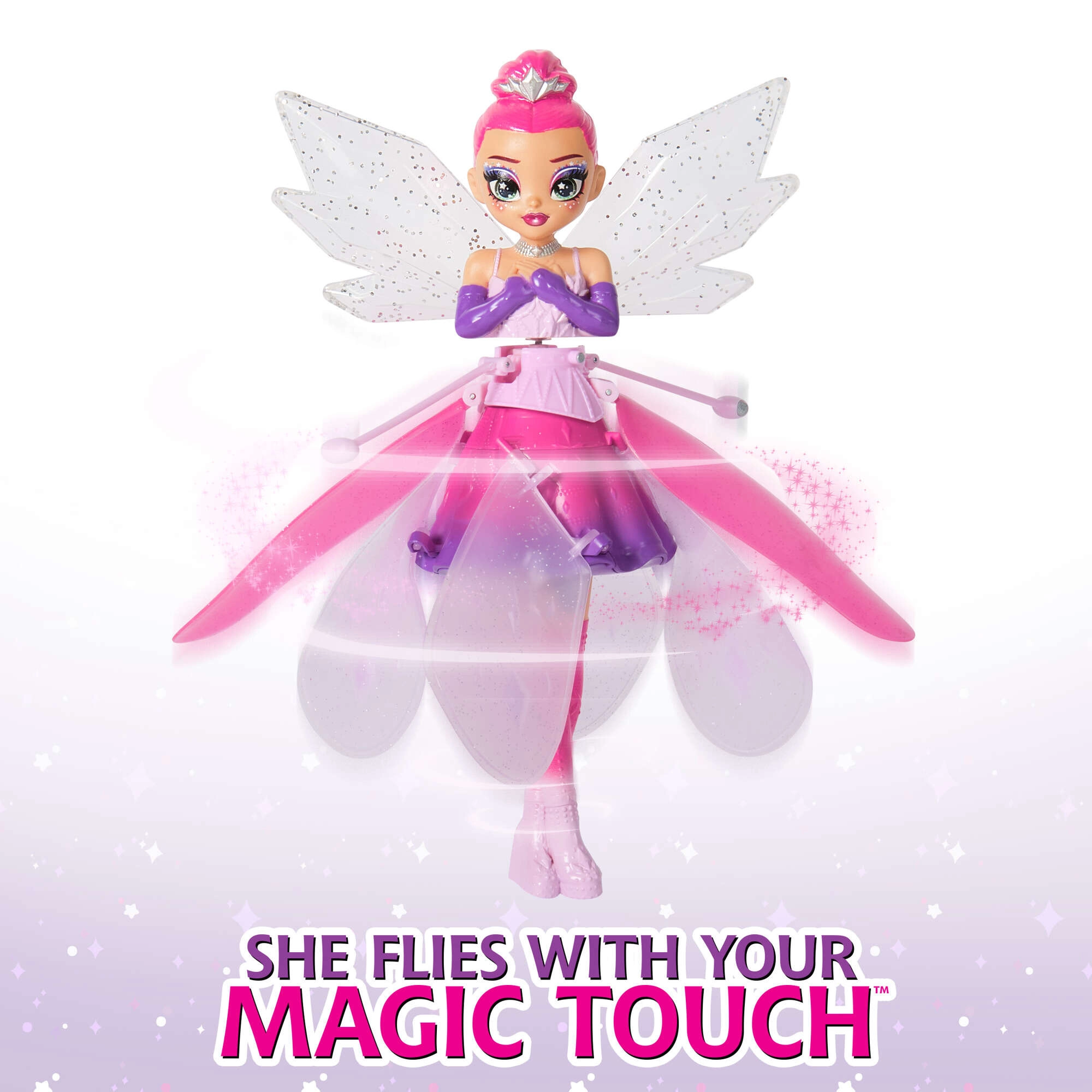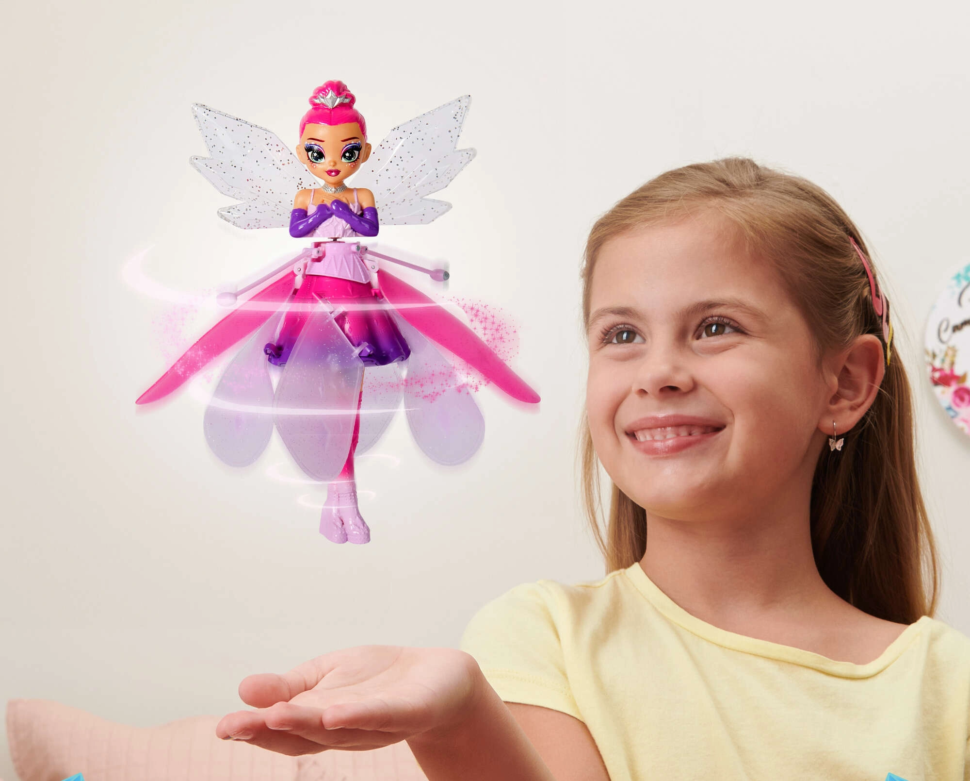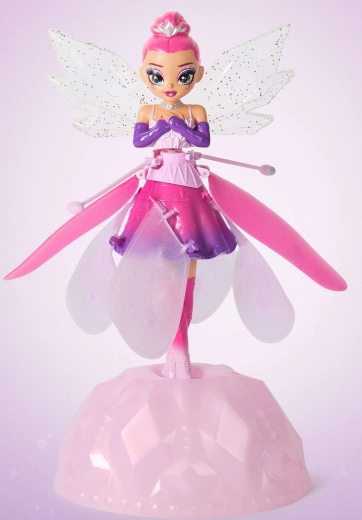 Designul superb, cu aripi de cristal, rochie sclipitoare și păr curcubeu, o face un cadou perfect pentru copiii care iubesc păpușile, figurinele de acțiune și lumea fantastică a zânelor. Datorită încărcării prin USB, este gata să se ridice din nou în scurt timp – este suficient să o așezi pe platformă sau să o eliberezi ușor din mână.