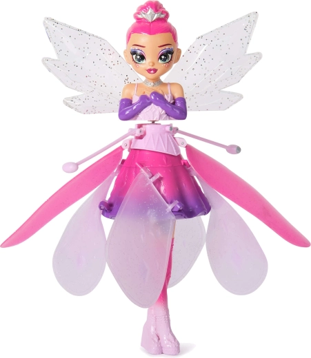 Păpușa zburătoare HATCHIMALS Crystal Flyers transformă orice cameră într-o scenă magică. După pornire, zâna își pornește elicele și se înalță elegant. Datorită senzorilor de mișcare integrați, reacționează la mâinile tale, astfel încât o poți ghida ușor în aer și o poți lăsa să danseze deasupra palmelor. Este fabricată din materiale durabile și sigure, potrivite pentru joaca de fiecare zi.
