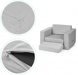 Datorită pernelor ușoare cu huse detașabile cu fermoar, păstrați mobilierul curat fără efort. Designul gri neutru se potrivește atât în camera copilului, cât și în camera de joacă, iar materialele de calitate rezistă utilizării zilnice.