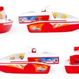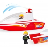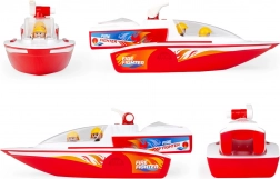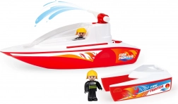Două figurine articulate ale echipajului se potrivesc în cockpit și pe punte, astfel încât copiii pot crea cu ușurință propriile povești – de la stingerea incendiilor la operațiuni curajoase de salvare. Construcția durabilă și designul plutitor sunt ideale pentru joacă atât acasă, cât și în aer liber.