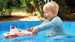 Datorită construcției plutitoare, barca este ideală pentru cadă, piscină și iazul din grădină. Stabilitatea permite manevre fluide și distracție îndelungată.