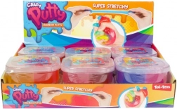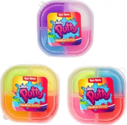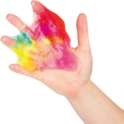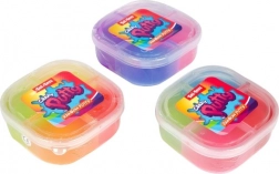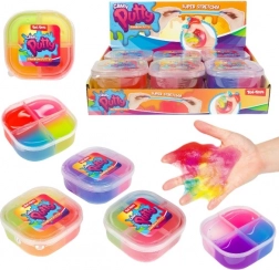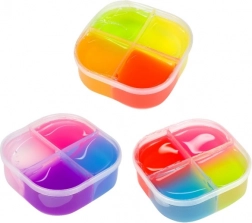 Slime-ul curcubeu este ideal pentru toți cei care doresc să experimenteze ceva neobișnuit și distractiv. Materialul din recipientele transparente este împărțit în patru culori, permițând combinații unice și experimente colorate.