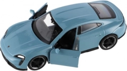 Model auto Porsche Taycan Turbo S de lux fabricat din metal cu accesorii din plastic. Are uși care se deschid și funcție de întoarcere înapoi. O alegere excelentă pentru colecționarii mici și mari!