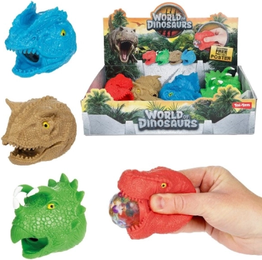 Cap de dinozaur antistres de strâns 8 cm, 4 tipuri, 12 bucăți în cutie
