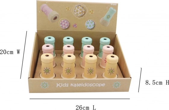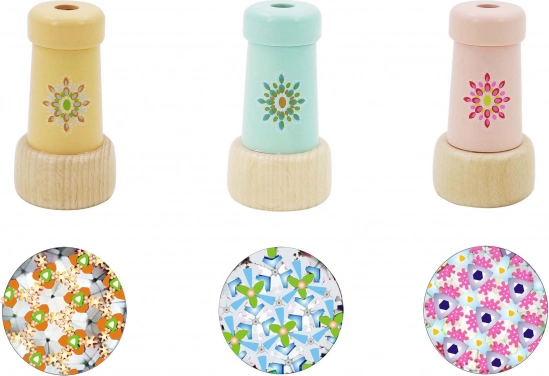 Bucurați-vă de magia lumii în culori cu kaleidoscopul nostru din lemn. Alegeți din variantele albastră, galbenă sau roz și descoperiți modele fascinante.