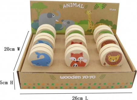 Acest yo-yo din lemn este fabricat dintr-un material de calitate, prietenos cu natura, care garantează o durată lungă de viață a jucăriei. Cu dimensiuni de 5,5x5,5x3,1 cm este perfect adaptat mâinilor copiilor și ușor de manevrat. Yo-yo-ul vine în patru variante distractive: leu, vulpe, balenă și crocodil, permițând copiilor să-și aleagă prietenul animal preferat. Fiecare pachet conține 12 bucăți, ideal pentru activități de grup ale copiilor sau ca un cadou.