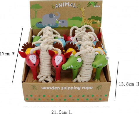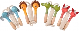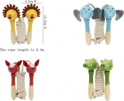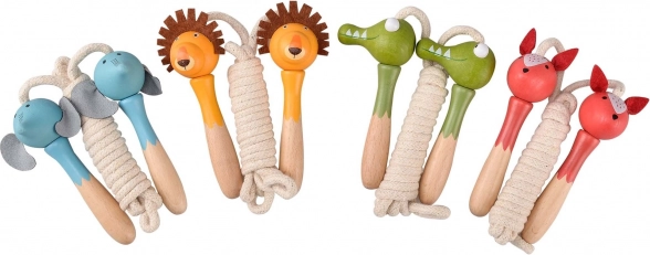Coardă de sărit din lemn cu animăluțe cu lungimea de 210 cm, cu mânere din lemn confortabile, în motive elefant, leu, crocodil, vulpe. Distracție grozavă și antrenament al coordonării pentru joacă afară și în casă.